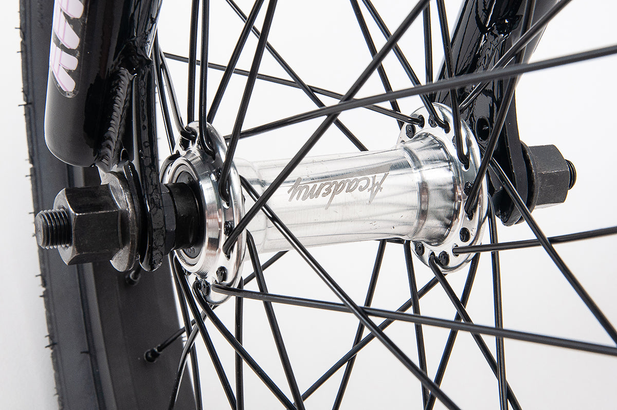 - Rear Hub: Academy Alloy Cassette, 36 hole, 14mm axle, Fully Sealed Bearing w/9t driver.
