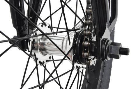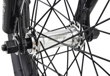 The Academy Origin is an entry-level BMX fitted to the needs of the youngest riders making it as easy as possible to enter the world of BMX. The entire construction of the Origin features a true BMX-geometry that has been downscaled to a kids-friendly size. The Hi-ten steel frame on this bike is a solid and affordable solution for a comfortable ride, which makes it very suitable for everyday commuting. With the crisp-sounding cassette hub on the Academy Freestyle BMX, you get a low maintenance hub system with instant pedal engagement.