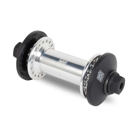 The new Mankind Vision Front Hub features sealed bearings, cr-mo female axle & bolts and two Plastic Front Hub Guards Colors: Matt Black, Polished Silver. Weight: 259Grams