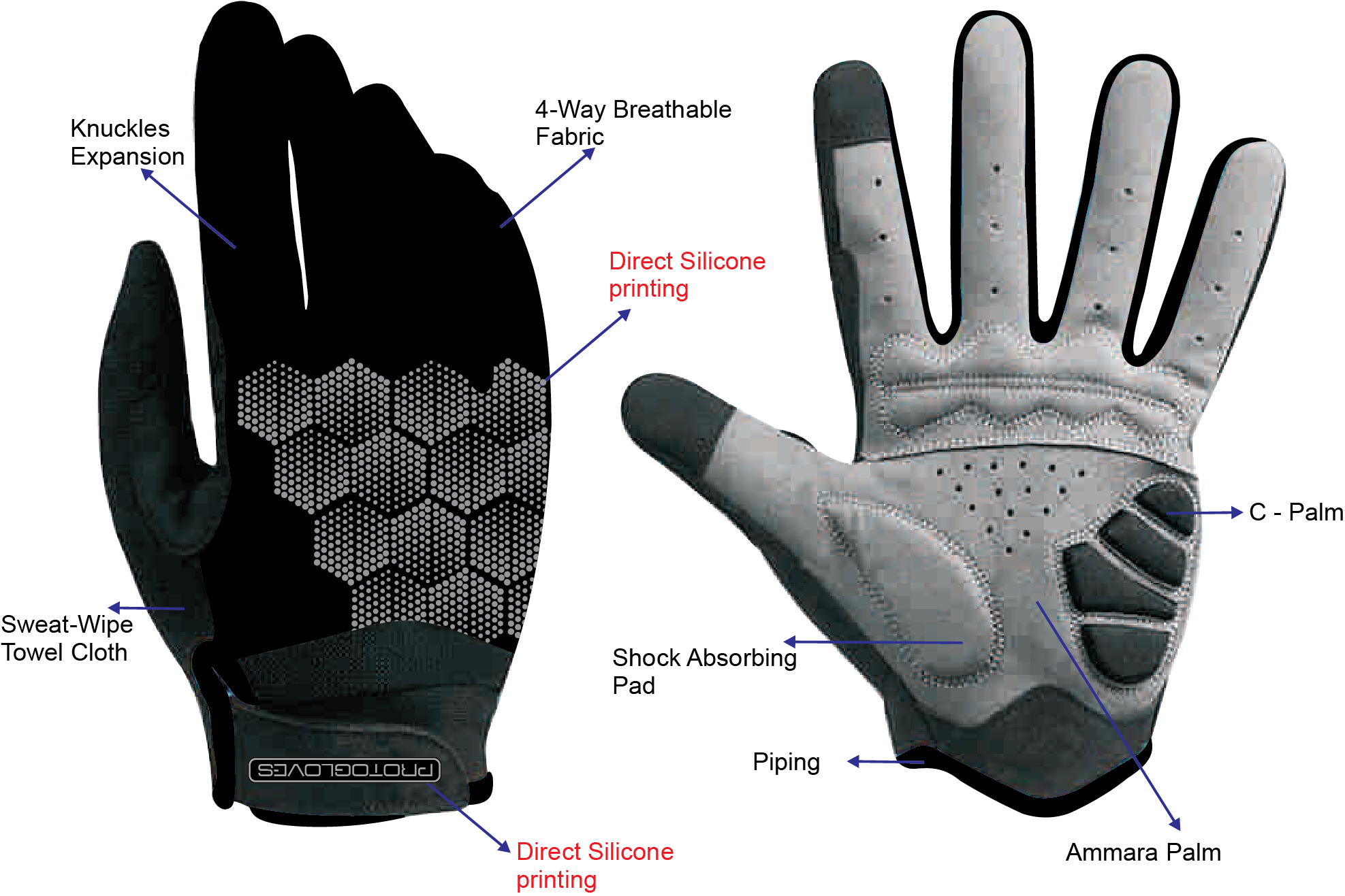 - Knuckles Expansion finger gussets enhance mobility and wick away moisture;